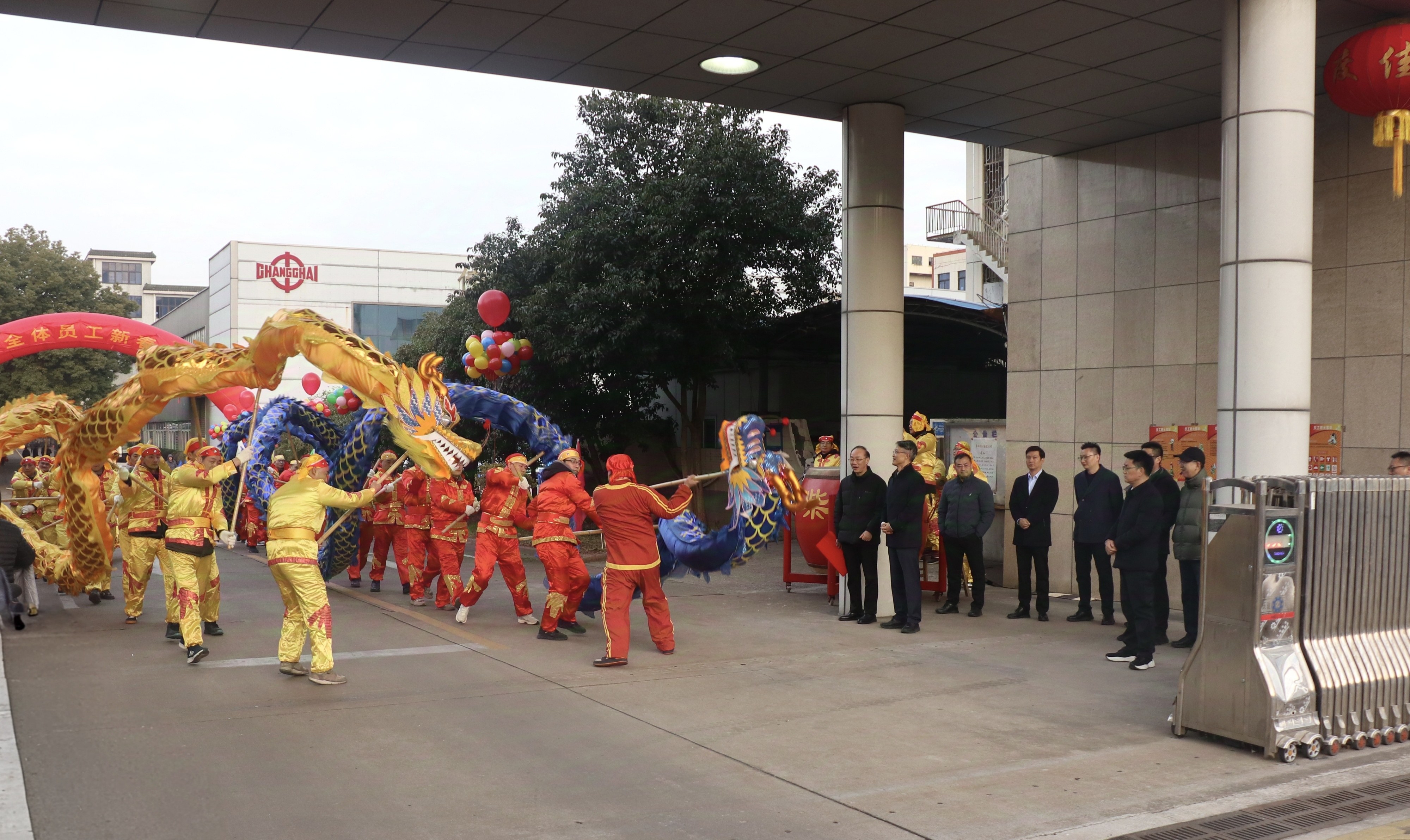 今日常柴訊 2月5日,農(nóng)歷正月初八,是新春佳節(jié)后開工的第一天,公司廠區(qū)內(nèi)彩旗飄揚(yáng),洋溢著喜慶祥和的節(jié)日氛圍。早上7點(diǎn)不到,公司副董事長張新、總經(jīng)理謝國忠?guī)ьI(lǐng)全體領(lǐng)導(dǎo)班子成員早早地來到公司大門口,向蛇年新春第一天上班的員工拜年。在公司總部大門口,由常柴員工組成的舞龍隊(duì),伴隨著鏗鏘有力的鼓點(diǎn),時(shí)而盤旋上升,時(shí)而俯沖而下,動(dòng)作流暢而充滿氣勢(shì),預(yù)示著常柴在新的一年里將以嶄新的姿態(tài),迎接挑戰(zhàn),再創(chuàng)輝煌。